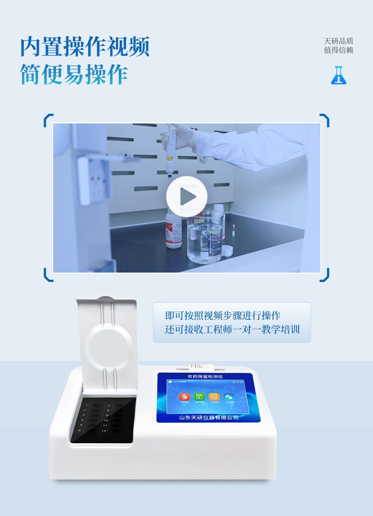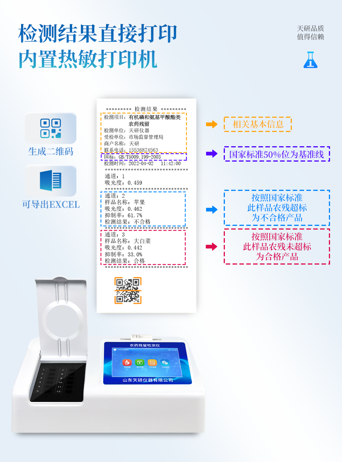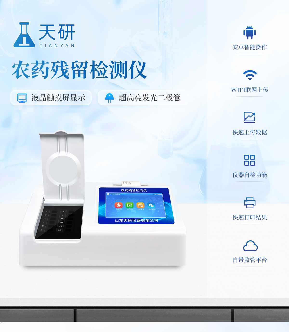 檢測(cè)標(biāo)準(zhǔn):依據(jù)國(guó)家標(biāo)準(zhǔn)方法(GB/T5009.199-2003)以及世界衛(wèi)生組織WHO、世界糧農(nóng)組織FAO殘留農(nóng)藥檢測(cè)標(biāo)準(zhǔn)、世界環(huán)境保護(hù)局EPA參照攝入量等要求來(lái)設(shè)計(jì)。采用酶抑制率比色法對(duì)水果、蔬菜等農(nóng)林產(chǎn)品中有機(jī)磷和氨基甲酸酯類(lèi)農(nóng)藥含量進(jìn)行快速準(zhǔn)確的檢測(cè),乙酰膽堿酯酶和丁酰膽堿酯酶試劑均可以使用,符合國(guó)家標(biāo)準(zhǔn)和農(nóng)業(yè)部標(biāo)準(zhǔn)的要求。