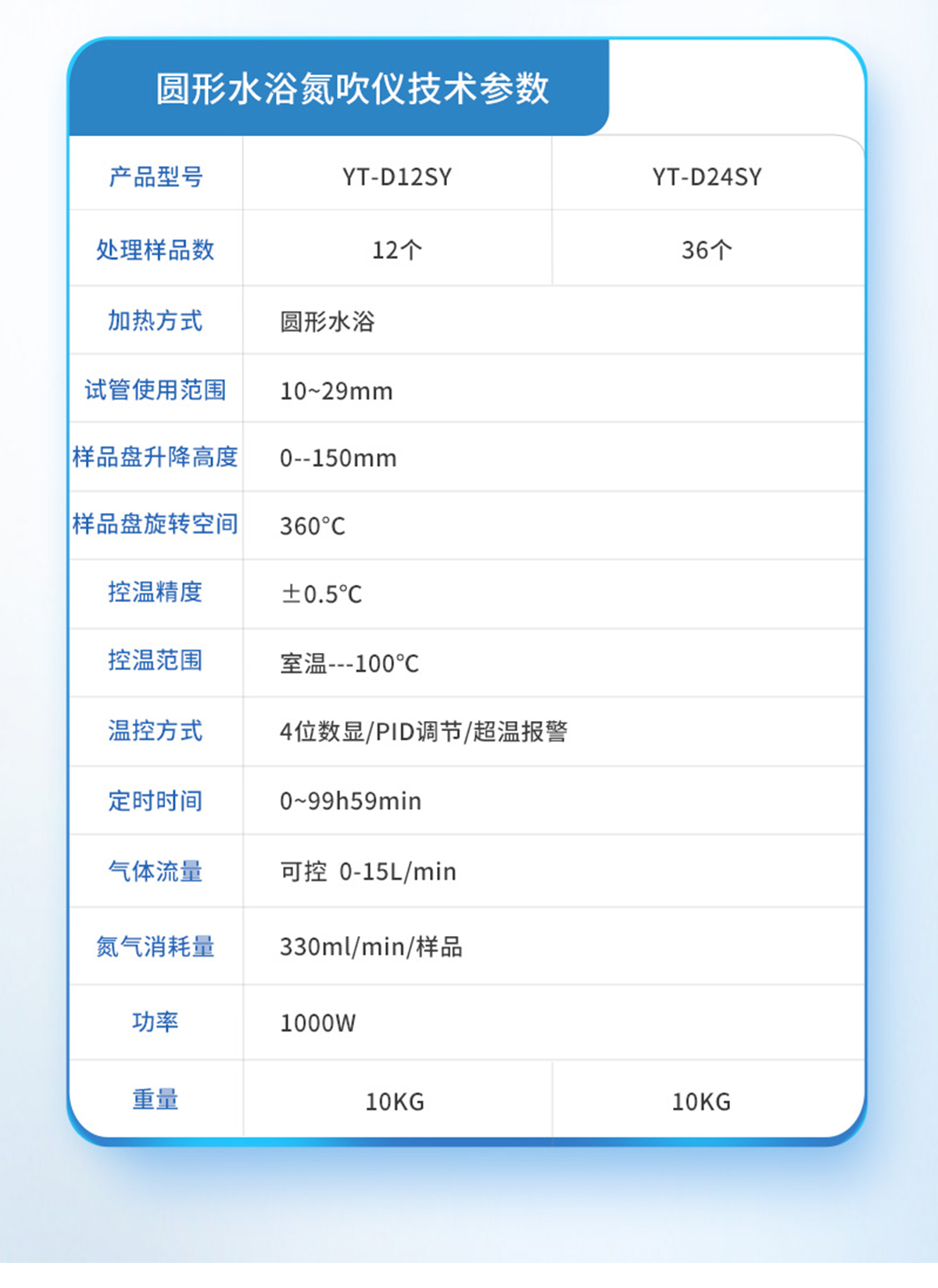 YT-D12(12孔)12個Ф16mm150W0-15L/min試管架一個±0.5℃室溫+5℃~150℃數(shù)顯控溫280mm*240mm*500mm7KG