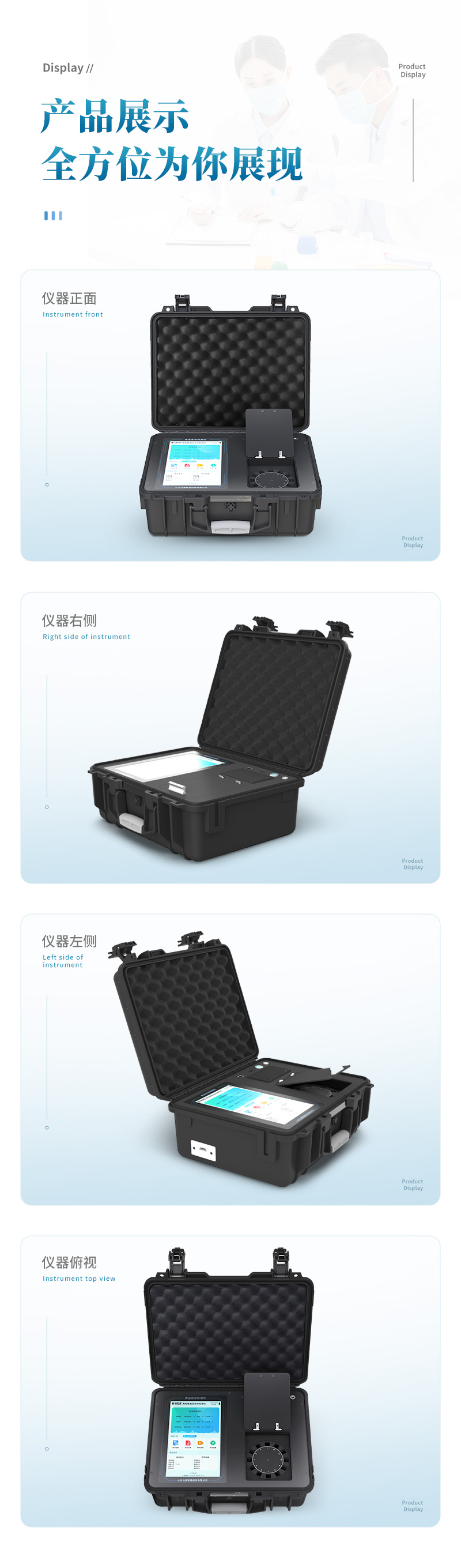 | 儀器采用手提式一體化系統(tǒng)檢測技術(shù),將分光光度模塊、膠體金檢測模塊、新型農(nóng)殘檢測模塊、數(shù)字化管理模塊、無線通訊模塊高度集成于一體,支持檢測200種食品安全檢測項目,同時預(yù)留升級檢測方法。 | 儀器檢測模塊標(biāo)準(zhǔn)化、智能化,檢測項目可隨意自由組合。檢測箱體內(nèi)置多個標(biāo)準(zhǔn)檢測單元,檢測模塊可以調(diào)整配置。 | 顯示屏幕:儀器采用10.1英寸豎向液晶觸摸屏顯,搭配運行安卓智能操作系統(tǒng),主控芯片采用ARM Cortex-A7,RK3288/4核處理器,主頻1.88Ghz,操作方便,性能更強。 | 檢測通道:≥12通道;采用精密旋轉(zhuǎn)比色池設(shè)計,使用同芯片同光源校準(zhǔn)精度,解決不同光源之間的誤差值,更加準(zhǔn)確**。(1-12通道間誤差0.1%,**號:ZL202022821055.2) | 儀器光源:高精度進(jìn)口四波長冷光源,每個通道均配置 410、520、590、630nm 波長光源,標(biāo)配**的光路切換裝置,**光路切換功能可實現(xiàn)64波長,并且所有檢測項目可實現(xiàn)所有通道同時檢測。 | 設(shè)備可一鍵校準(zhǔn),自動保存校準(zhǔn)數(shù)據(jù),自動對比校驗,得到精準(zhǔn)光源,采用Android SP存儲數(shù)據(jù),光源數(shù)據(jù)永不丟失,方便每一次使用。 | 通訊接口:配備無線通信模塊、4G(APN)通訊模塊、藍(lán)牙傳輸,同時具有雙USB接口以及RJ45網(wǎng)線接口,可以多方式實現(xiàn)數(shù)據(jù)保存及數(shù)據(jù)傳輸 | 存儲方式:支持U盤存儲,標(biāo)準(zhǔn)USB接口,免驅(qū)動安裝。檢測結(jié)果存儲容量20萬條以上,可生成Excel表格進(jìn)行拷貝,并具有登錄保護(hù)功能。 | 智能化操作系統(tǒng): | 1)操作系統(tǒng):儀器可在同一檢測界面自動對應(yīng)相關(guān)檢測通道,一次性選擇1-12個樣品名稱,無需退出界面,節(jié)省操作時間。并可以對每個通道屬性和樣品信息單獨進(jìn)行編輯,例如送檢單位、人員,檢測人員等,打印時勾選打印顯示。 | 2)數(shù)據(jù)集成系統(tǒng):設(shè)備首頁自動匯總分析檢測數(shù)據(jù),包含:周檢測數(shù)據(jù)、月檢測數(shù)據(jù),全部檢測總數(shù)量,均包含檢測總數(shù),合格數(shù),不合格數(shù),以及相關(guān)柱形分析圖,各項檢測數(shù)據(jù)一目了然,無需電腦查詢,更加快捷直觀。 | 3)數(shù)據(jù)庫系統(tǒng):十幾項數(shù)據(jù)庫分類管理儀器:包含項目類型、項目數(shù)據(jù)、檢測數(shù)據(jù)、歷史記錄、國標(biāo)信息、曲線信息、采樣信息、檢測信息、受檢信息、復(fù)核信息、圖表信息、光源校準(zhǔn)信息、打印樣式信息、樣品庫信息等等,數(shù)據(jù)庫之間互相協(xié)調(diào)聯(lián)動保證數(shù)據(jù)的真實完整性。同時產(chǎn)品數(shù)據(jù)庫以及歷史檢測記錄支持一鍵檢索功能。 | 4)限量規(guī)判系統(tǒng):具有限量查詢、添加物質(zhì)合規(guī)判定系統(tǒng)。檢測出結(jié)果后,系統(tǒng)自動調(diào)用系統(tǒng)數(shù)據(jù)庫中相關(guān)國標(biāo)進(jìn)行比對判定,客觀顯示判定結(jié)果是否合格。 | 5)項目預(yù)設(shè)系統(tǒng):儀器具有任務(wù)預(yù)設(shè)模塊,一鍵提前預(yù)設(shè),給出方便快捷的新檢測方案,每一個任務(wù)分別可以設(shè)置不同的樣品、批次、編號、來源、備注、抽樣信息、檢測信息、受檢信息、復(fù)核信息等更多信息。樣品送檢時一鍵調(diào)取保存信息,并可多次調(diào)取,大大提高檢測效率。 | 6)數(shù)據(jù)監(jiān)管系統(tǒng):同步對接監(jiān)管平臺,數(shù)據(jù)可局域網(wǎng)和互聯(lián)網(wǎng)數(shù)據(jù)上傳,檢測結(jié)果可選擇直接傳至食品安全監(jiān)管平臺。進(jìn)行區(qū)域食品安全監(jiān)管及大數(shù)據(jù)分析處理與數(shù)據(jù)統(tǒng)計,檢測區(qū)域食品安全長短期動態(tài),達(dá)到食品安全問題預(yù)估、預(yù)警。 | 7)打印系統(tǒng):內(nèi)置全新打印機,新創(chuàng)自定義打印方式,可按需靈活勾選控制:產(chǎn)品合格證(國家農(nóng)業(yè)部標(biāo)準(zhǔn)要求),二維碼,抽樣信息、檢測信息,受檢信息、復(fù)核信息、抽樣日期、檢測日期等信息的打印。 | 供電模式:儀器交直流兩用,直流12V供電,可連接車載電源,可配6ah大容量充電鋰電池,電量可實時顯示,方便戶外流動測試。 | 膠體金檢測模塊:采用雙通道CMOS成像處理技術(shù)及膠體金免疫層析技術(shù),可同時讀取雙膠體金卡數(shù)據(jù),自動采集、處理分析,將檢測結(jié)果顯示,并可根據(jù)參考限值自動判斷檢測結(jié)果,可檢測常見的獸藥殘留、生物毒素、抗生素、違禁添加物等。 | 1)探測技術(shù):CMOS成像探測; | 2)檢測通道:1個通道; | 3)檢測方式:消線法和比色法; | 4)顯示模式:陰性或陽性; | 5)曲線形式:軌道式掃描方式,顯示金標(biāo)卡圖像,實時生成、識別CT曲線圖,無需手動調(diào)整,完成檢測后自動退出檢測卡。兼容市場上其他金標(biāo)卡,使用耗材不受限制。 | 儀器加入遠(yuǎn)程升級功能,可定向分客戶分儀器更新,開機后自動更新,客戶無需任何操作,即可升級全新項目。做到了無需退換機器即可實現(xiàn)實時遠(yuǎn)程升級檢測儀器。 |