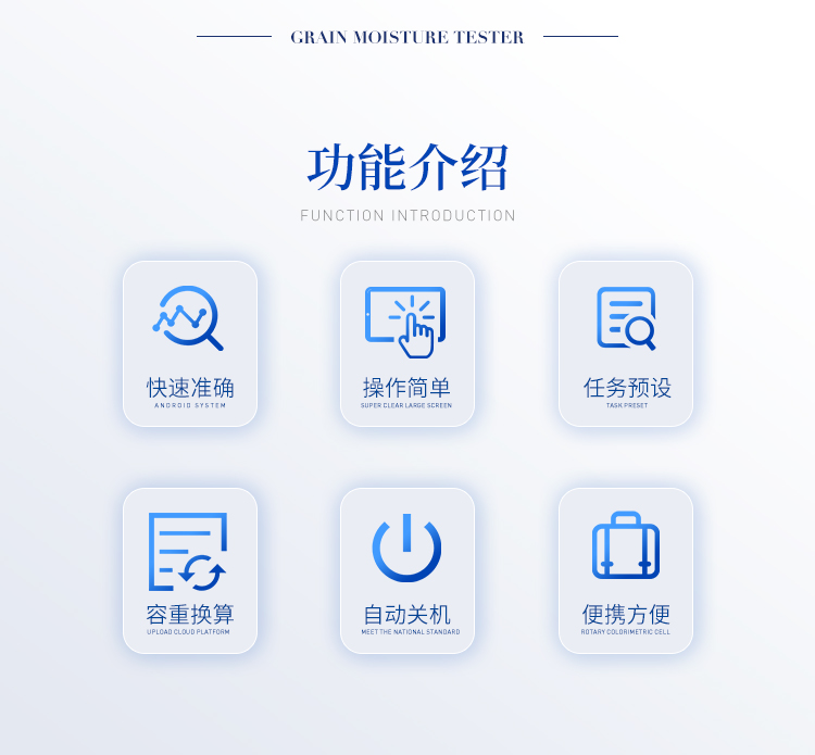 容重換算:獨特的**容重取樣裝置在**測量小麥的同時,可以直接換算出小麥容重指標(biāo)。