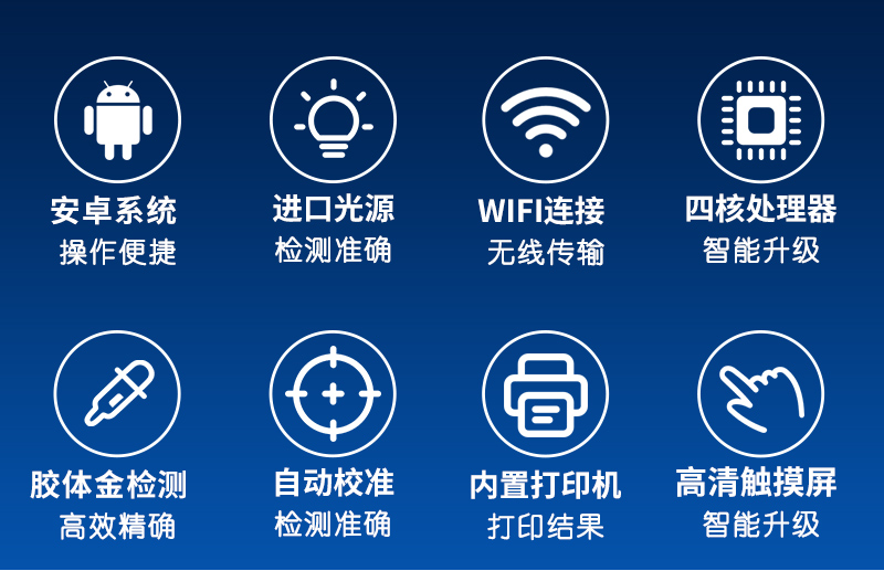 | 七寸彩屏全觸摸輸入,支持手寫功能支持WIFI,支持3G、4G; | 支持金標項目檢測定性檢測,結果可顯示樣品陰陽性結果 | 內置智能操作系統(tǒng)軟件內置大容量存儲數(shù)據(jù)庫,可隨時分類查詢已測項目; | ☆數(shù)據(jù)可局域網(wǎng)和互聯(lián)網(wǎng)數(shù)據(jù)上傳,可構建食品安全監(jiān)管系統(tǒng)平臺,支持LIMS 系統(tǒng),內置USB接口,可擴展外設; | ☆自動精準識別CT線位置,糾錯范圍可達±3mm; | 支持金標項目檢測定性檢測,結果可顯示樣品陰陽性結果; | 檢測響應時間:< 3S | 讀數(shù)精度:CV<1% ; | 12V低壓電源供電,便攜式設計,適合野外,車載或室內等各種場所使用 |