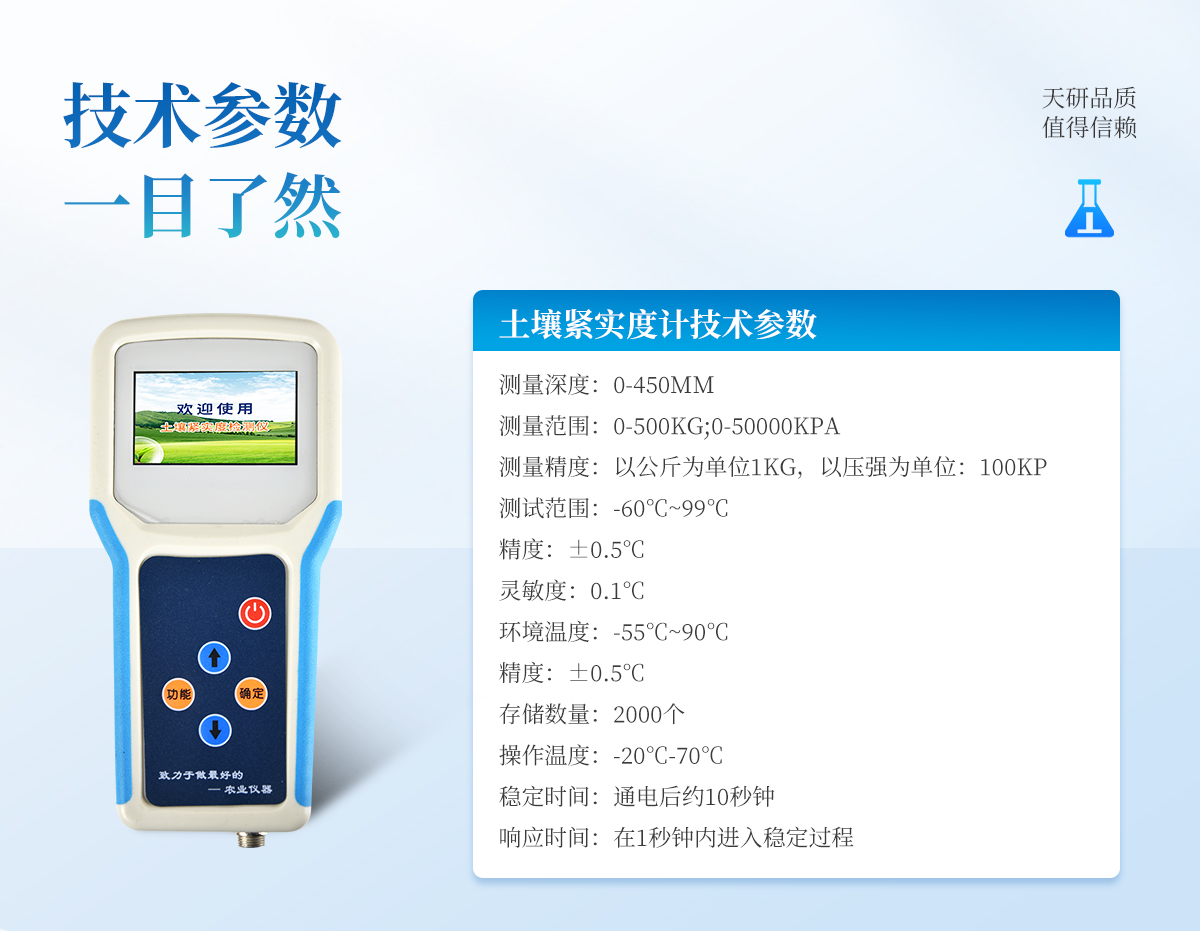 | *測(cè)量深度:0-450mm .測(cè)量范圍:0-500kg;0-50000kpa | *緊實(shí)度參數(shù):測(cè)量精度:以公斤為單位1Kg,以壓強(qiáng)為單位:100Kp; | *溫度參數(shù):測(cè)試范圍:-60℃~99℃,精度:±0.5℃;靈敏度:0.1℃ | *環(huán)境溫度:-55℃~90℃ 精度:±0.5℃?!?/td> | *存儲(chǔ)數(shù)量:2000個(gè) | *操作溫度:-20℃-70℃ | *穩(wěn)定時(shí)間:通電后約10秒鐘; .響應(yīng)時(shí)間:在1秒鐘內(nèi)進(jìn)入穩(wěn)定過程; |