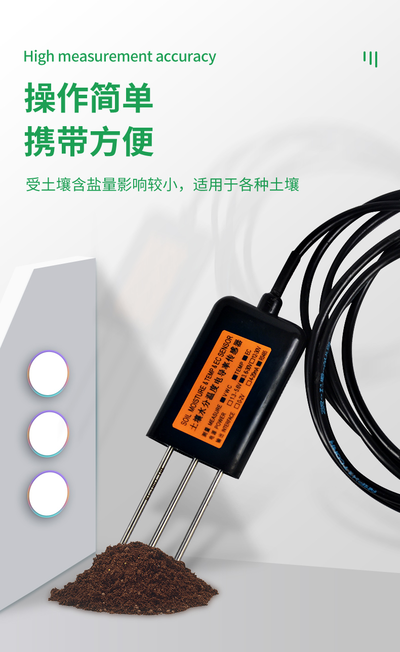MEC10土壤水分/電導率/溫度傳感器性能穩(wěn)定靈敏度高,是觀測和研究鹽漬土的發(fā)生、演變、改良以及水鹽動態(tài)的重要工具。通過測量土壤的介電常數(shù),能直接穩(wěn)定地反映各種土壤的真實水分含量。MEC10土壤水分傳感器可測量土壤水分的體積百分比,是符合目前**標準的土壤水分測量方法。適用于土壤墑情監(jiān)測、科學試驗、節(jié)水灌溉、溫室大棚、花卉蔬菜、草地牧場、土壤速測、植物培養(yǎng)、污水處理、精細農(nóng)業(yè)等場合。