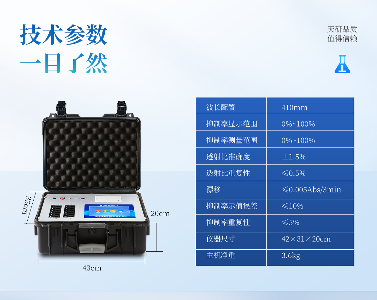 410nm0%~100%0%~100%±1.5%≤0.5%≤0.005Abs/3min≤10%≤5%43×35×20cm5.1kg