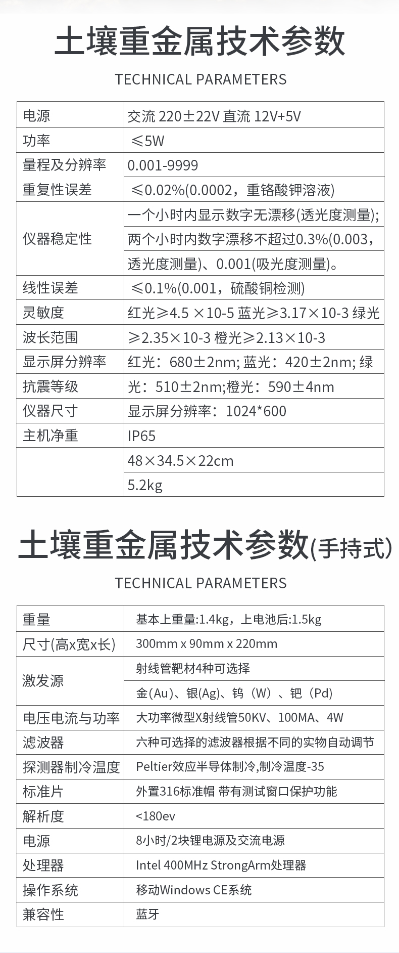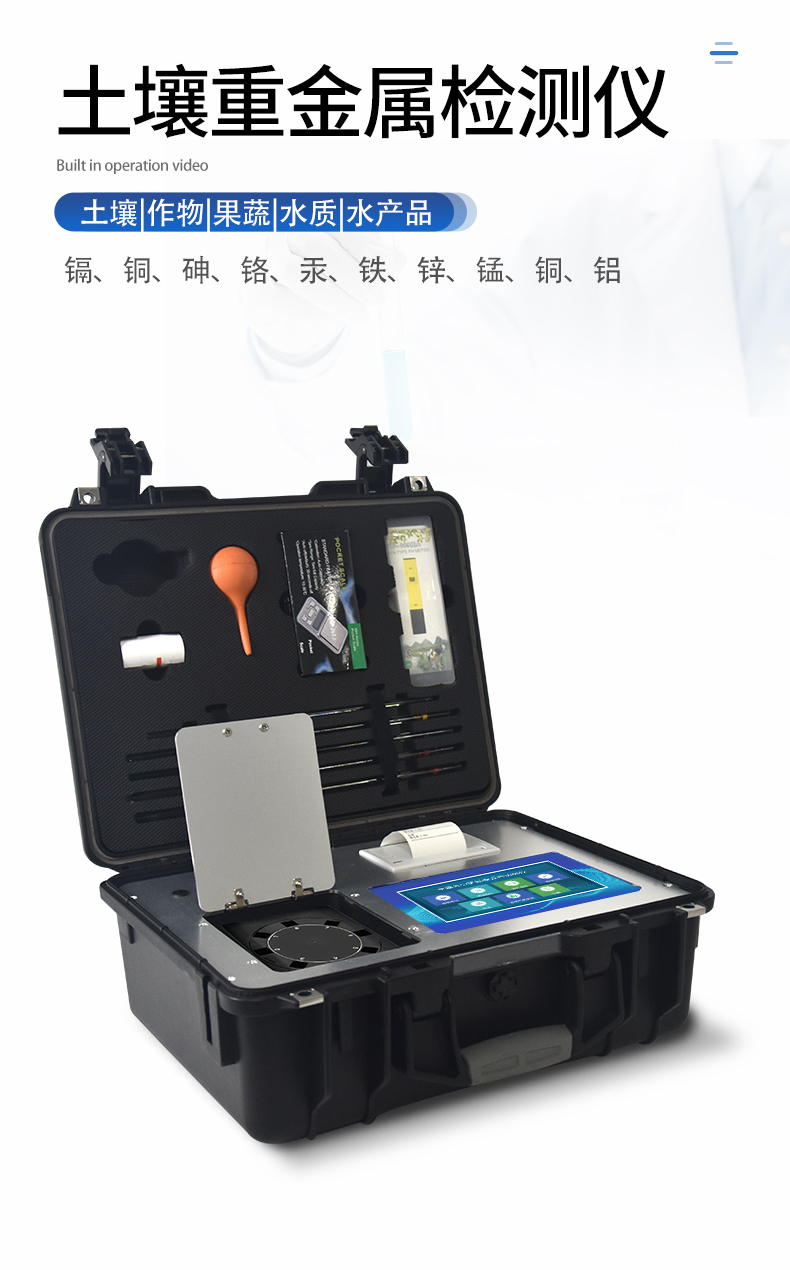 | 性能可靠,工作穩(wěn)定性均優(yōu)于國家標準JJG79-90標準5--6倍,重復性達到光柵類分光光度計指標,采用微處理器技術,單片機控制,觸摸按鍵,操作簡便。 | 重金屬測試采用聯(lián)合消化和分項測試技術,簡化測試流程,減少測試時間,大大提高測試效率,提高測試精度。 | 擴展性強,該儀不僅可以專用于重金屬的檢測還可以擴展測定土壤、肥料、植株中養(yǎng)分的測試(HM-ZSA型),一機多用。 | 集藥,器,儀于一體,相當于一個小型實驗室, 兩個鋁合金箱體,易于攜帶,便于現(xiàn)場測試,流動服務。適于基層檢測部門對含有重金屬污染的蔬菜、水果等食品進行篩選。 |