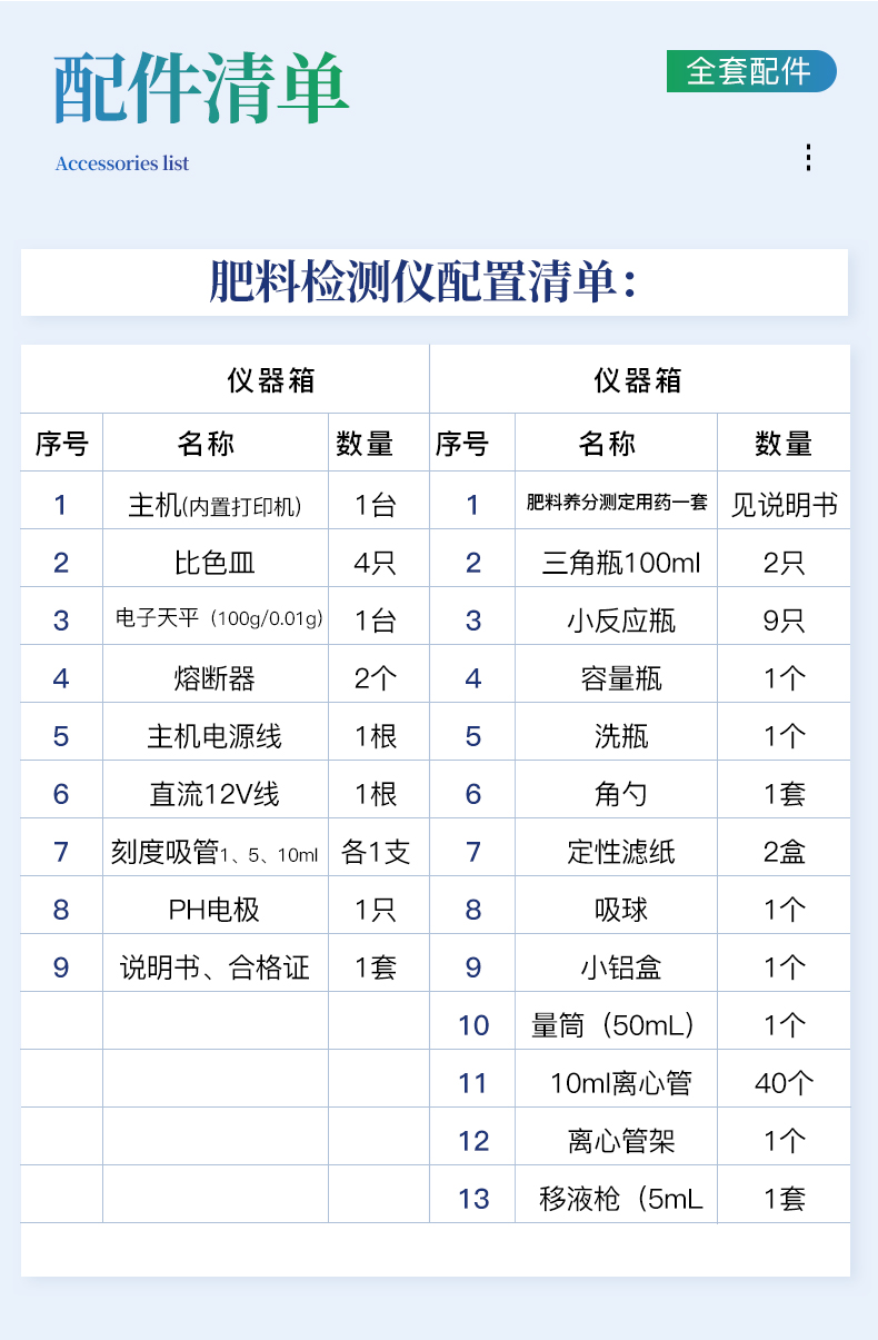 01主機(jī)(內(nèi)置打印機(jī))1臺(tái)01肥料養(yǎng)分測(cè)定用藥一套見(jiàn)說(shuō)明書(shū)