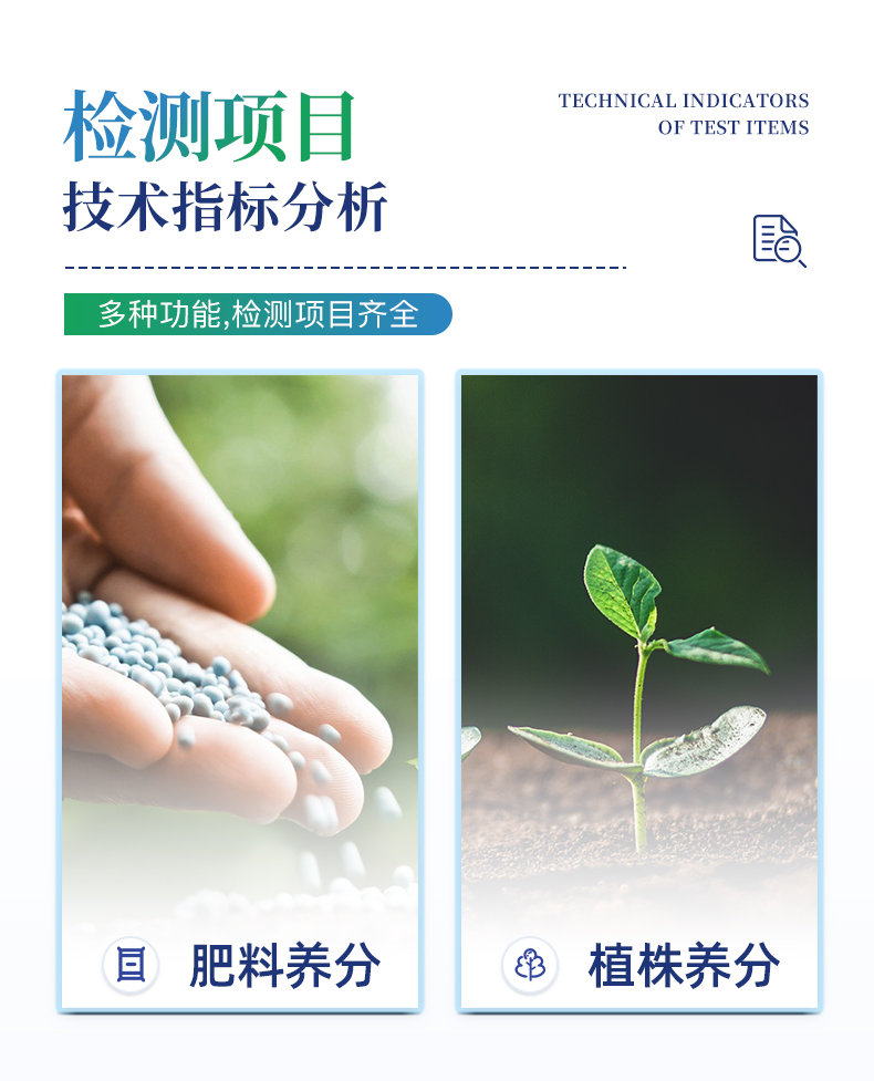 肥料養(yǎng)分:● 單質(zhì)化肥中的氮、磷、鉀; ● 復(fù)(混)合肥及尿素中的銨態(tài)氮、硝態(tài)氮、磷、鉀、縮二脲; ●                有機(jī)肥(葉面肥)中速效氮、速效磷、速效鉀、全氮、全磷、全鉀、有機(jī)質(zhì),各種腐植酸等。可擴(kuò)展檢測(cè)鈣、鎂、硫、鐵、錳、硼、鋅、銅、氯、硅、鉬等微量元素以及各種重金屬(鉛、鉻、鎘、汞、砷、鎳、鋁、氟、鈦、硒)。