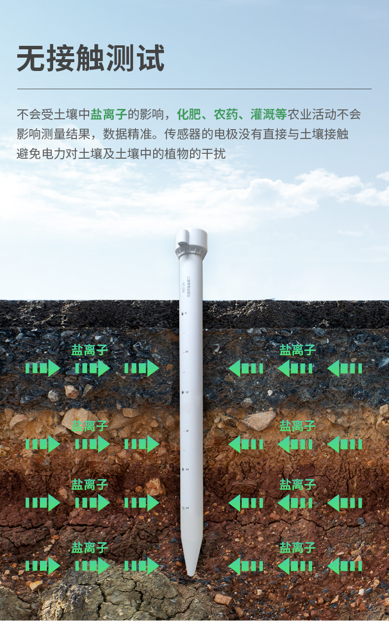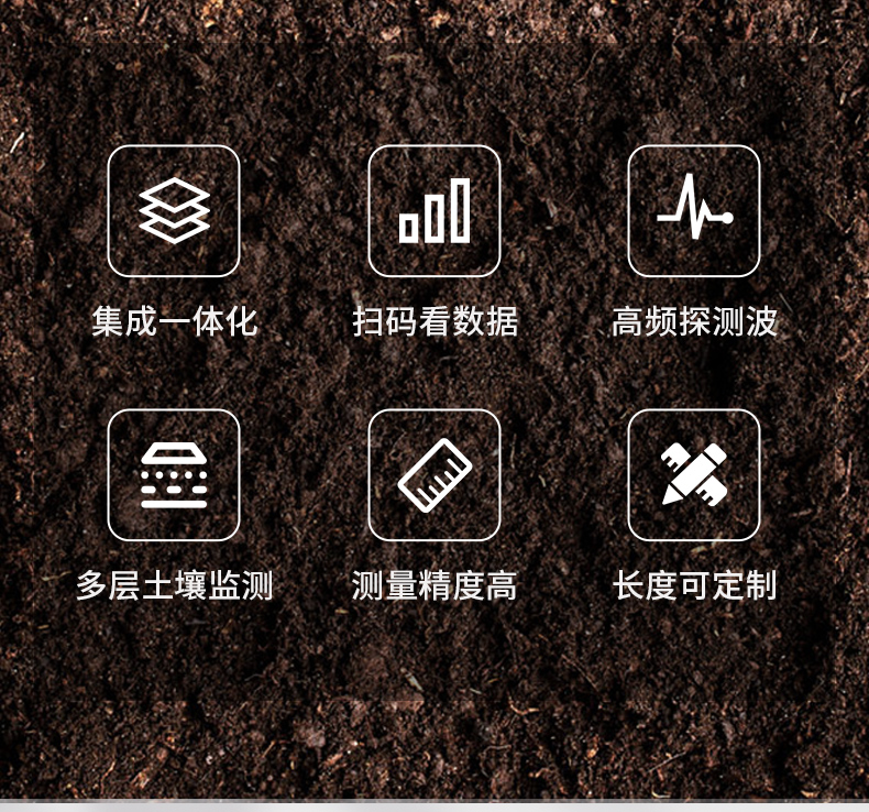 | 1、外殼采用PVC塑料管,內(nèi)部發(fā)射近1G赫茲的高頻探測(cè)波,可以穿透塑料管,有效感知土壤環(huán)境。 | 2、不受土壤中鹽離子的影響,化肥、農(nóng)藥、灌溉等農(nóng)業(yè)活動(dòng)不會(huì)影響測(cè)量結(jié)果,數(shù)據(jù)精準(zhǔn)。 | 3、傳感器的電極沒有直接與土壤接觸,避免電力對(duì)土壤及土壤中的植物的干擾。 | 4、產(chǎn)品采用標(biāo)準(zhǔn)的Modbus-RTU485通信模式,*遠(yuǎn)通信2000米。 | 5、支持10-30V寬電壓充電。 | 6、一體式可同時(shí)監(jiān)測(cè)四層土壤溫濕度。 |