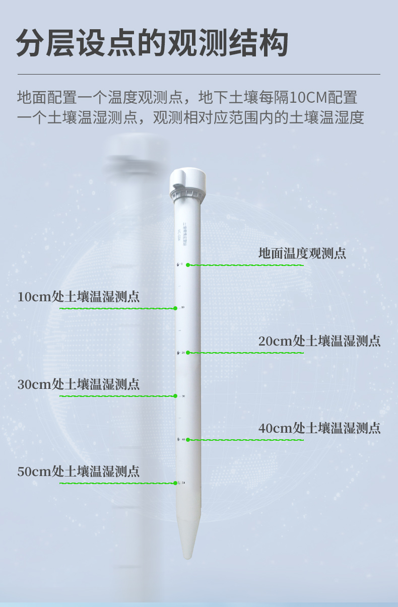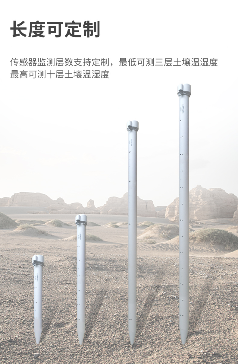 管式土壤墑情監(jiān)測(cè)儀是一款基于介電常數(shù)原理而研發(fā)的傳感器,可以針對(duì)不同土層的水分、溫度含量進(jìn)行快速、準(zhǔn)確、全面監(jiān)測(cè)。該傳感器監(jiān)測(cè)層數(shù)支持定制,**可測(cè)三層土壤溫濕度,**可測(cè)十層土壤溫濕度。