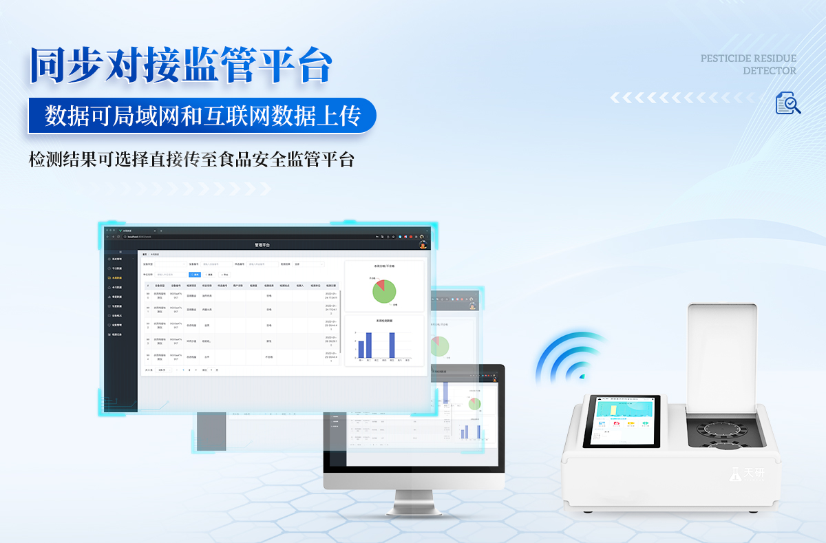 6. 智能操作分析系統(tǒng): 6.1.便捷操作系統(tǒng):設(shè)備檢測時可在同一檢測界面自動對應(yīng)相關(guān)檢測通道一次性選擇1-24個樣品名稱,無須退出界面,節(jié)省操作時間。 6.2.數(shù)據(jù)集成系統(tǒng):設(shè)備首頁自動統(tǒng)計檢測數(shù)據(jù)包含:周檢測數(shù)據(jù)、月檢測數(shù)據(jù),全部檢測總數(shù)量,均包含檢測總數(shù),合格數(shù),不合格數(shù),以及相關(guān)柱形分析圖,對各項檢測數(shù)據(jù)清晰掌握,無需電腦查詢,更加快捷直觀。 6.3.項目預(yù)設(shè)系統(tǒng):支持添加單個及多個相同或不相同的任務(wù)預(yù)設(shè),一鍵快速調(diào)取,每一個任務(wù)分別可以設(shè)置不同的樣品、批次、編號、來源、備注、抽樣信息、檢測信息、受檢信息、復(fù)核信息等更多信息。 6.4.數(shù)據(jù)監(jiān)管系統(tǒng):同步對接監(jiān)管平臺,數(shù)據(jù)可局域網(wǎng)和互聯(lián)網(wǎng)數(shù)據(jù)上傳,檢測結(jié)果可選擇直接傳至食品安全監(jiān)管平臺。集成OSS輸出存儲服務(wù)、區(qū)分設(shè)備定向管理應(yīng)用,進行區(qū)域食品安全監(jiān)管及大數(shù)據(jù)分析處理與數(shù)據(jù)統(tǒng)計,檢測區(qū)域食品安全長短期動態(tài),達到食品安全問題預(yù)估、預(yù)警。 6.5.自定義打印系統(tǒng):內(nèi)置新創(chuàng)自定義打印系統(tǒng),可按需靈活設(shè)置開啟或關(guān)閉:產(chǎn)品合格證(國家農(nóng)業(yè)部標準),二維碼,抽樣信息、檢測信息,受檢信息、復(fù)核信息、抽樣日期、檢測日期等信息的打印。 6.6.A4版本報告打印功能:設(shè)備可自動生成A4版報告,外接打印機即可打印 6.7.系統(tǒng)遠程更新功能:可定向分客戶分儀器更新系統(tǒng),按照不同客戶后期實際需求添加項目,無需設(shè)備返廠,即可遠程實時升級全新系統(tǒng),節(jié)省時間成本及避免運輸造成設(shè)備損壞。 |