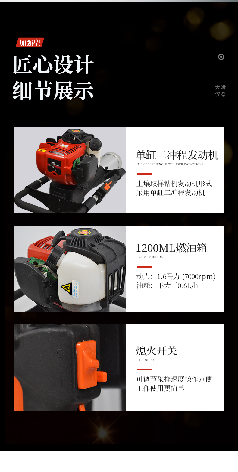 動(dòng)力(汽油)土壤采樣器(汽油動(dòng)力土鉆)土壤采樣器是本廠汲取廣大客戶意見、經(jīng)多方用戶需求和市場調(diào)研,開發(fā)出的一款動(dòng)力(汽油)土壤采樣器。儀器采用汽油機(jī)驅(qū)動(dòng)、以大幅減免土壤取樣人員的勞動(dòng)力和快速、取樣簡便而著稱。