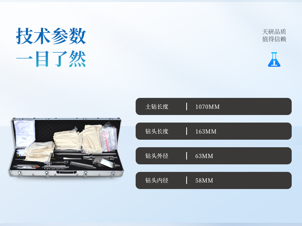 規(guī)格長(zhǎng) 35cm ,螺紋連接長(zhǎng) 30 cm ,帶有刻度,螺紋連接長(zhǎng) 50 cm ,帶有刻度,螺紋連接長(zhǎng) 100cm ,帶有刻度,螺紋連接刀寬 7cm ,刀間距 5cm ,采樣長(zhǎng)度 20cm ,螺紋連接,不銹鋼材質(zhì),特殊硬化處理,免去生銹煩惱,便于打理維護(hù)刀寬 3cm ,刀間距 6cm ,采樣長(zhǎng)度 20cm ,螺紋連接,不銹鋼材質(zhì),特殊硬化處理,免去生銹煩惱,便于打理維護(hù)采樣直徑 7cm,螺紋連接,錳鋼材質(zhì),堅(jiān)硬耐磨不銹鋼材質(zhì)、采樣直徑 5cm、采樣長(zhǎng)度 20cm,螺紋連接不銹鋼材質(zhì),寬 20mm19×22mm牛皮,手背透氣,3 米用于擦拭鉆具內(nèi)置 EVA防震內(nèi)襯,用于裝上述鉆具,便于戶(hù)外攜帶250ml 、測(cè)土壤有機(jī)物專(zhuān)用土樣保存瓶,乳白色