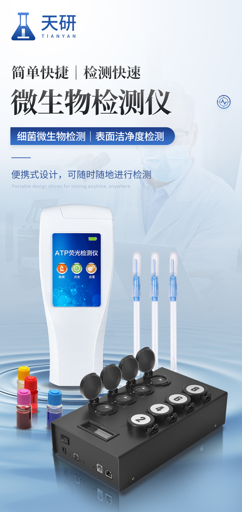 該設(shè)備為全新升級產(chǎn)品,大屏幕觸摸顯示屏,代替?zhèn)鹘y(tǒng)按鍵。操作采用生物化學(xué)反應(yīng)方法檢測ATP含量,ATP熒光檢測儀基于螢火蟲發(fā)光原理,利用“熒光素酶—熒光素體系”快速檢測三磷酸腺苷(ATP)。ATP拭子含有可以裂解細(xì)胞膜的試劑,能將細(xì)胞內(nèi)ATP釋放出來,與試劑中含有的特異性酶發(fā)生反應(yīng),產(chǎn)生光,再用熒光照度計(jì)檢測發(fā)光值,微生物的數(shù)量與發(fā)光值成正比,由于所有生物活細(xì)胞中含有恒量的ATP,所以ATP含量可以清晰地表明樣品中微生物與其他生物殘余的多少,用于判斷衛(wèi)生狀況。